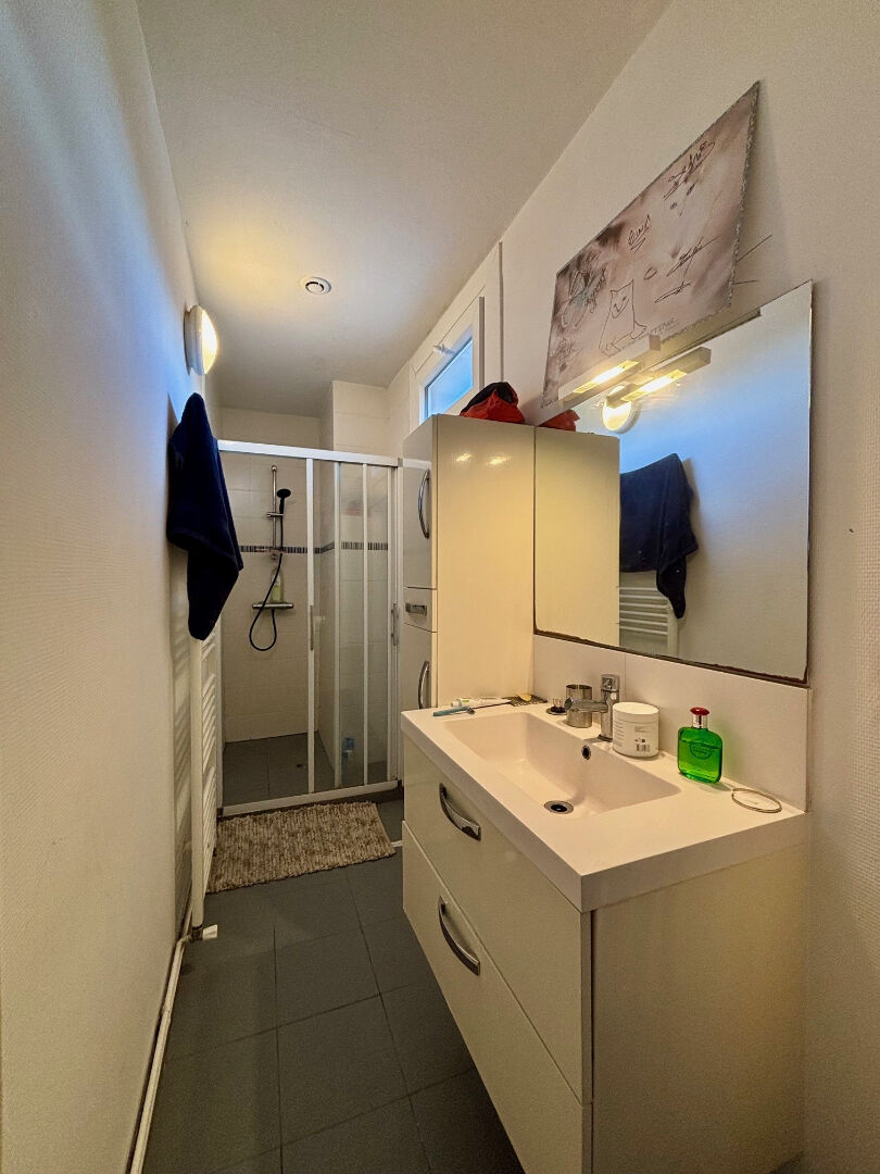 Notre agence ADL Immobilier vous propose à la vente un appartement trois pièces en duplex. Situé dans une petite copropriété, il se compose d'une entrée desservant un salon de 18 m², une buanderie, une cuisine-séjour aménagée. Un escalier situé dans la cuisine permet d'accéder au premier étage, qui ouvre sur un couloir desservant une salle d'eau, un WC indépendant, ainsi que deux spacieuses chambres, chacune équipée de la climatisation.