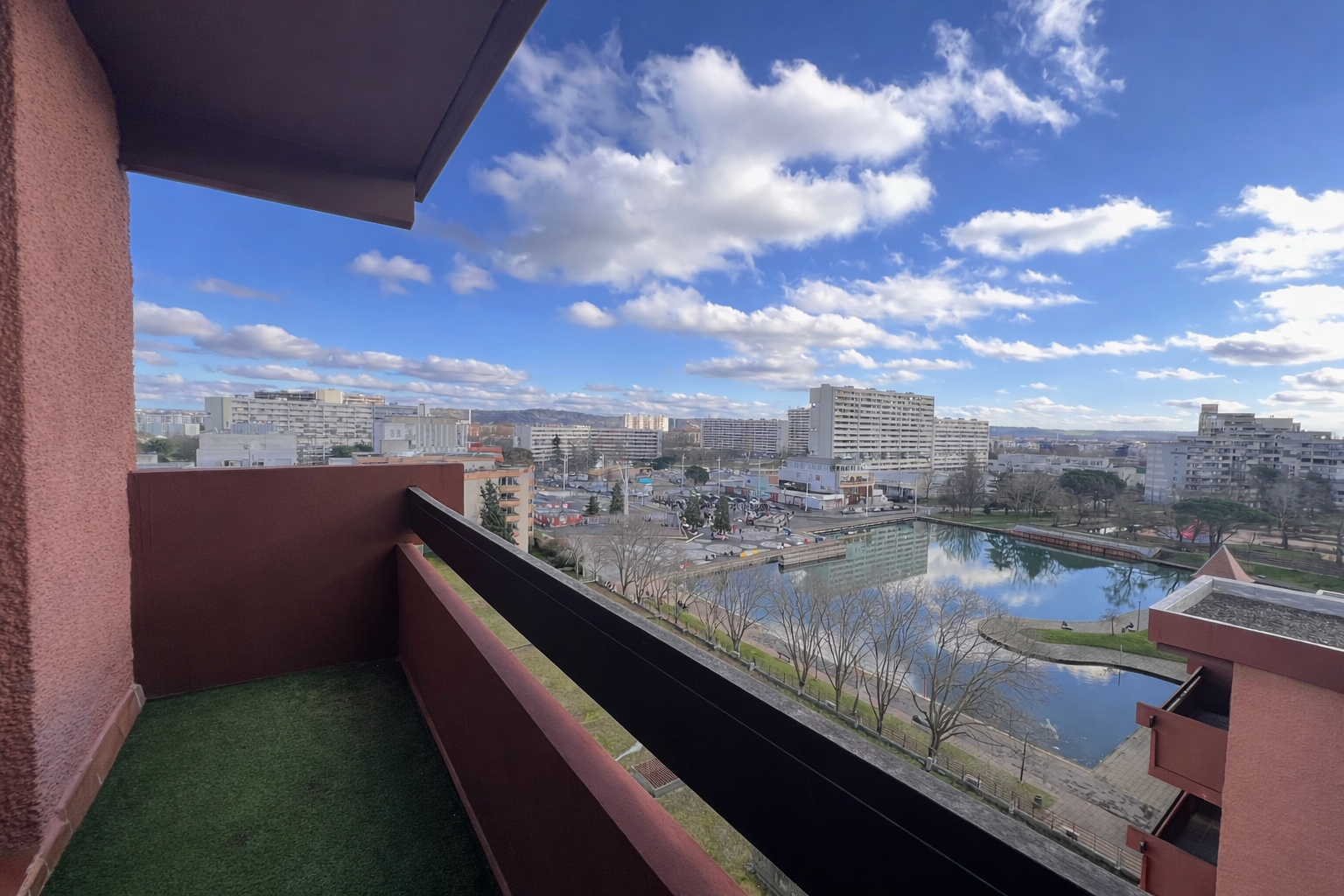 Il se compose d'une entrée, d'une cuisine séparée aménagée et équipée, d'un vaste séjour de plus de 30m² donnant accès à un balcon avec une très belle vue sur le lac de la Reynerie.