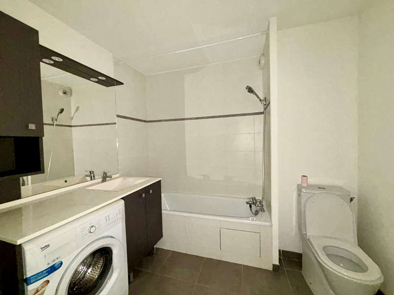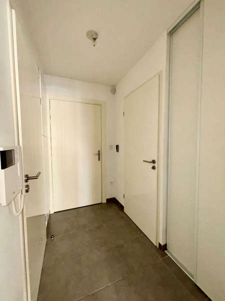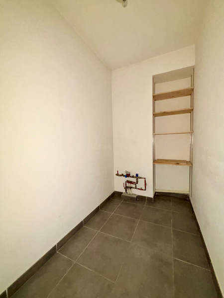 L'entrée, équipée d'un placard, dessert une salle de bains avec WC ainsi qu'un espace de rangement de 3 m².