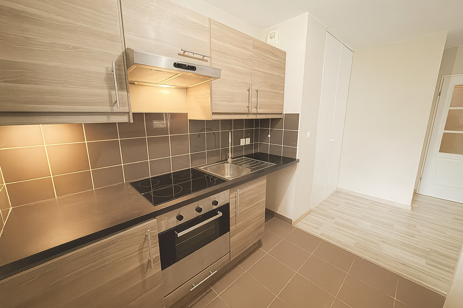 Il se compose d'une entrée, d'une chambre avec placard, d'une salle de bains, d'un WC séparé, et d'une spacieuse pièce de vie de plus de 29 m² avec cuisine équipée ouverte, séparée par un bar.
