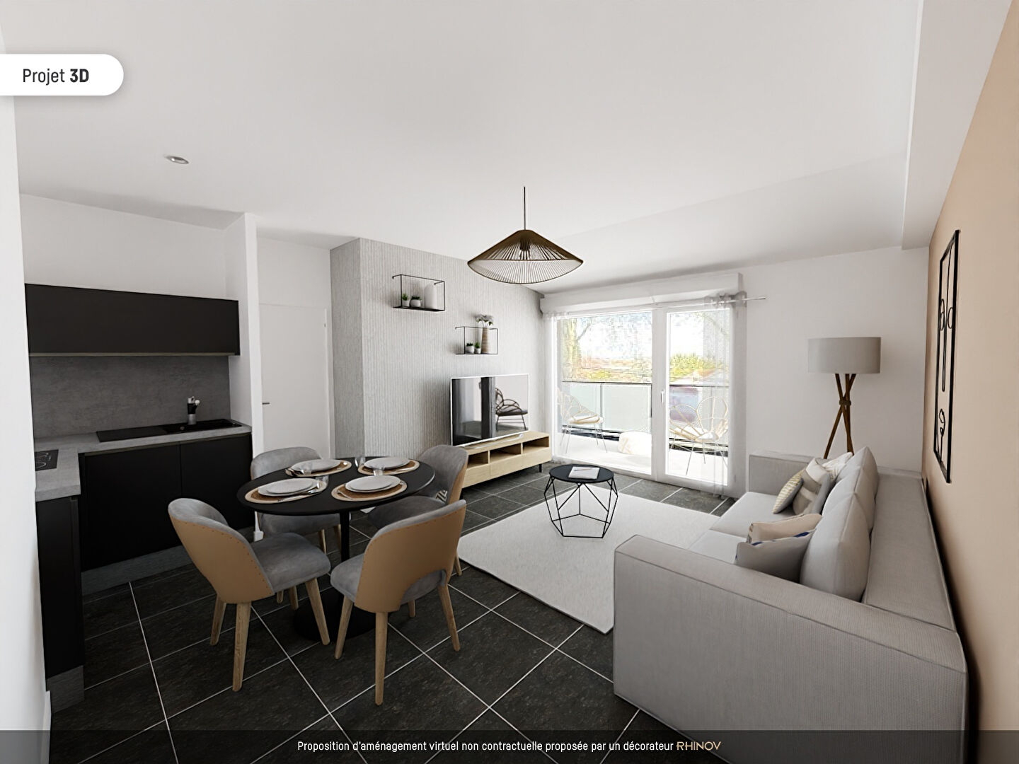 Il se compose d'une entrée donnant sur un espace cuisine/séjour lumineux ouvrant sur un balcon.