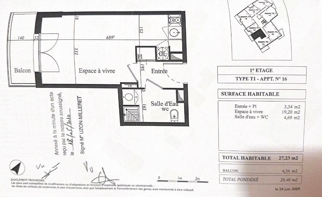 Toulouse - Proche Avenue de l'Atlanta - 2km du métro Argoulets : Découvrez cet appartement T1 à vendre idéalement situé à Toulouse. D'une surface de 27 m², cet appartement au 1er étage d'un immeuble de trois étages construit en 2011 est parfait pour un premier achat ou un investissement locatif. Il se compose d'une kitchenette avec l'espace nuit/pièce de vie qui donne sur une terrasse exposée Sud Ouest de plus de 4m², d'une salle d'eau et d'un WC.