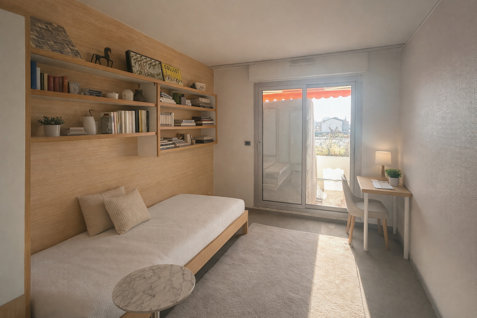 salle de bain attenante les deux pièces permettant également l'accès au balcon.