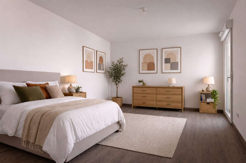 Il se compose d'une entrée, d'une pièce à vivre avec kitchenette aménagée, d'un balcon de 8m² sans vis-à-vis, une salle d'eau avec WC et une vaste chambre avec accès au balcon.