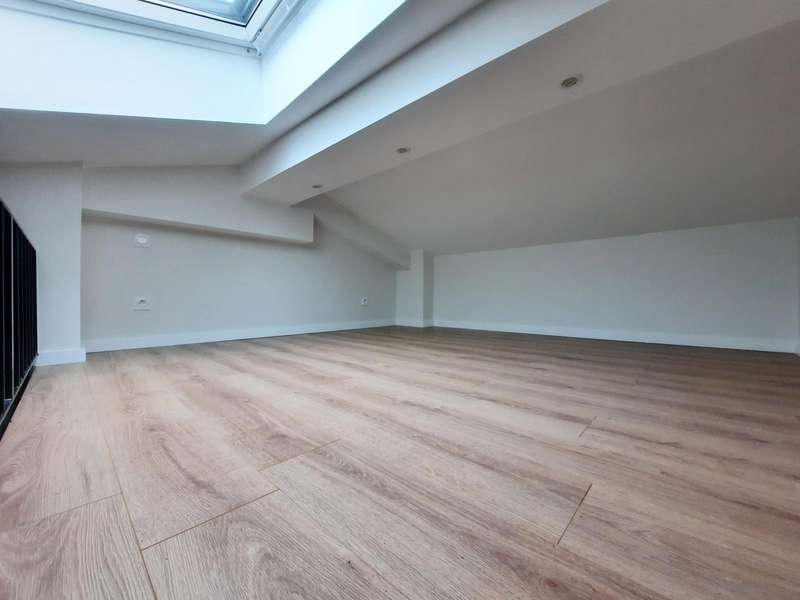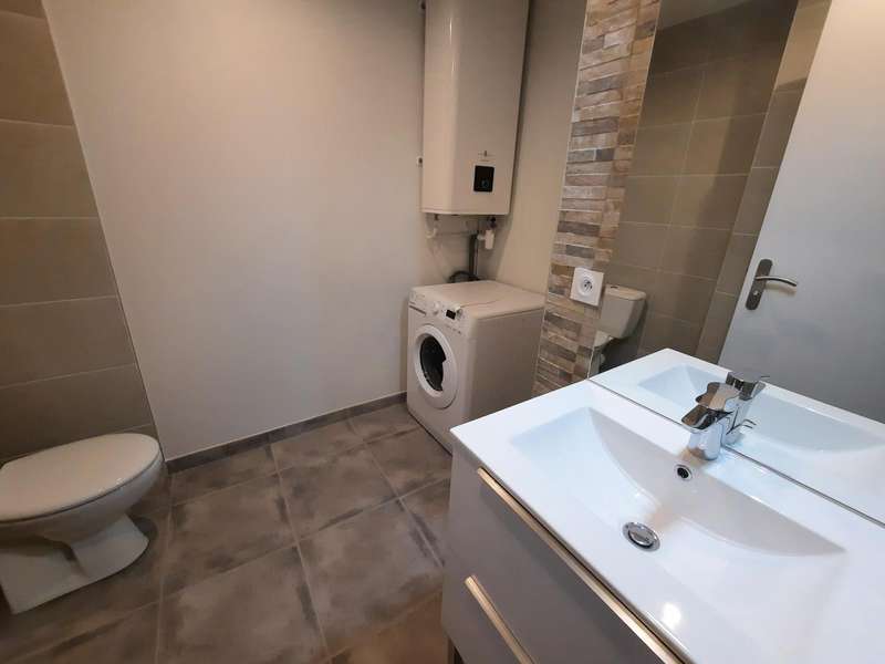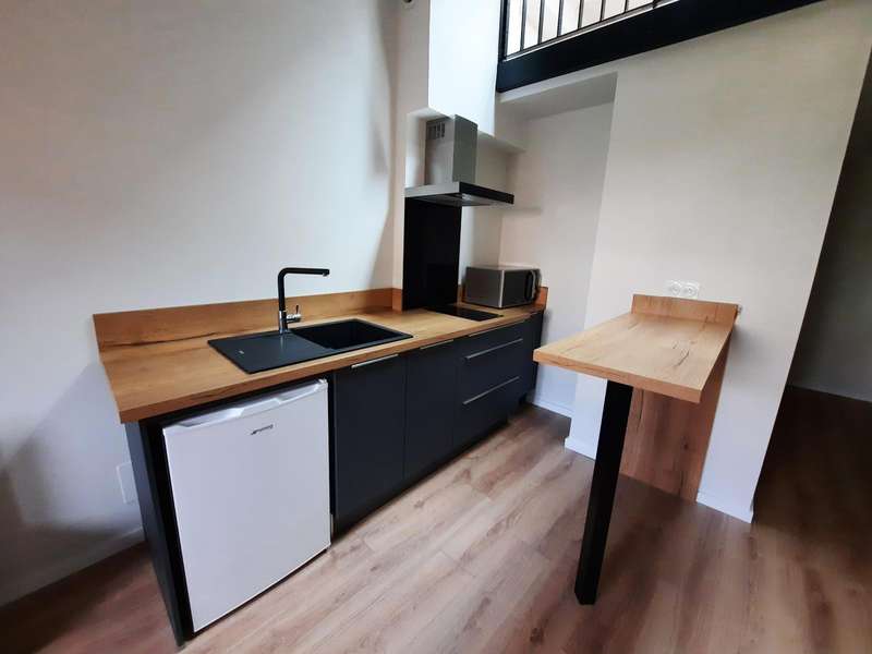 Logement en dernier étage celui ci se compose d'une entrée donnant sur un beau séjour avec cuisine ouverte équipée (plaque électrique, hotte aspirante, frigo), un coin mezzanine avec velux, suffisamment grand pour y mettre un matelas deux places. Une salle d'eau avec WC et machine à laver complètent cet appartement.
