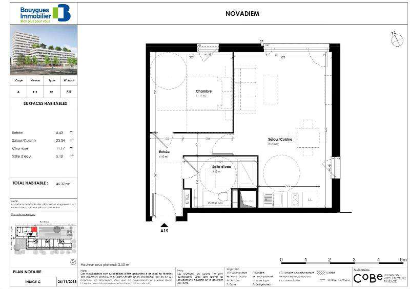 Situé au 1er étage d'une résidence neuve sécurisée, découvrez un T2 fonctionnel de 46.32 m² composé d'une entrée, d'un séjour avec cuisine ouverte équipée, une grande chambre séparée, une salle d'eau avec WC. Une place de parking sous-sol complète ce bien. L'eau chaude et le chauffage collectifs sont inclus dans les charges tout comme la taxe d'enlèvement d'ordures ménagères.