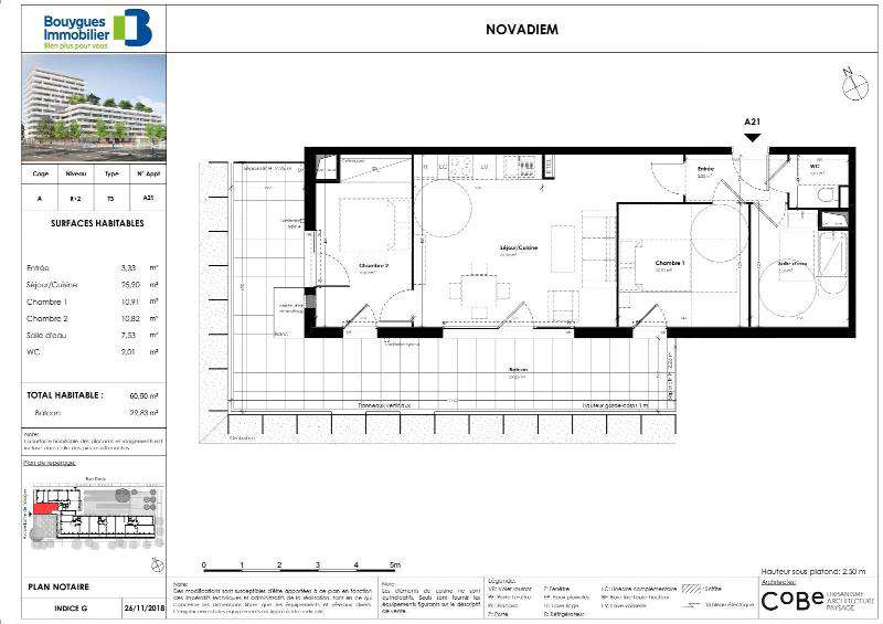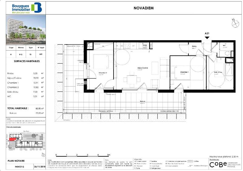 Situé au 2ème étage d'une résidence neuve sécurisée, découvrez un T3 fonctionnel de 60.50m² composé d'une entrée, d'un séjour avec cuisine ouverte équipée, un balcon, 2 chambres , belle terrasse de 29.83m². Une place de parking sous-sol complète ce bien. L'eau chaude et le chauffage collectifs sont inclus dans les charges tout comme la taxe d'enlèvement d'ordures ménagères.