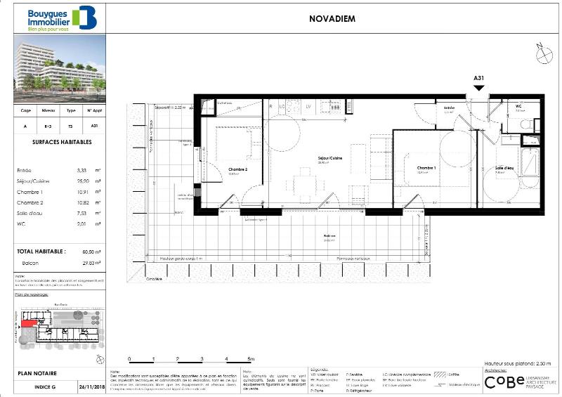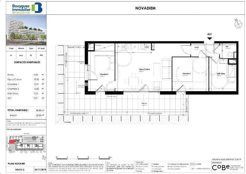 sécurisée, découvrez un T3 fonctionnel de 60.50m² composé d'une entrée, d'un séjour avec cuisine ouverte équipée, un balcon, 2 chambres , belle terrasse de 29.83m². Une place de parking sous-sol complète ce bien. L'eau chaude et le chauffage collectifs sont inclus dans les charges tout comme la taxe d'enlèvement d'ordures ménagères.
