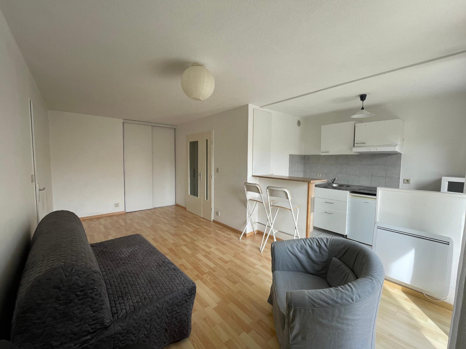 Toulouse - Grand Rond - T2 meublé avec balcon et parking - Grand Rond Joli T2 Meublé dans résidence sécurisée, à proximité du tramway, et métro ligne B composé : d'une entrée avec placard, une cuisine ouverte sur la pièce principale, un balcon, une salle de bains, une chambre avec placard, un wc, et un emplacement de parking- loyer mensuel 672.93 € CC dont 58 € de provisions pour charges avec régularisation annuelle suivant décompte réel - avec en sus 11 € de provision de la taxe d'enlèvement des ordures ménagères avec régularisation annuelle - DG 603.93 € - Honoraires charge locataire TTC de 494 € - dont 114 € TTC pour l'état des lieux - disponible le 24/02/2021.