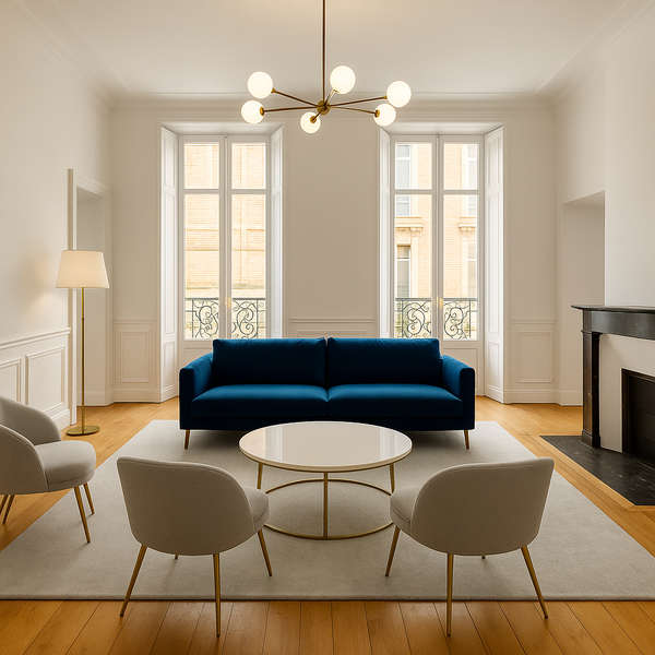 Accessible par ascenseur PMR, l'appartement développe 175 m² habitables organisés en U autour d'une belle cour intérieure.