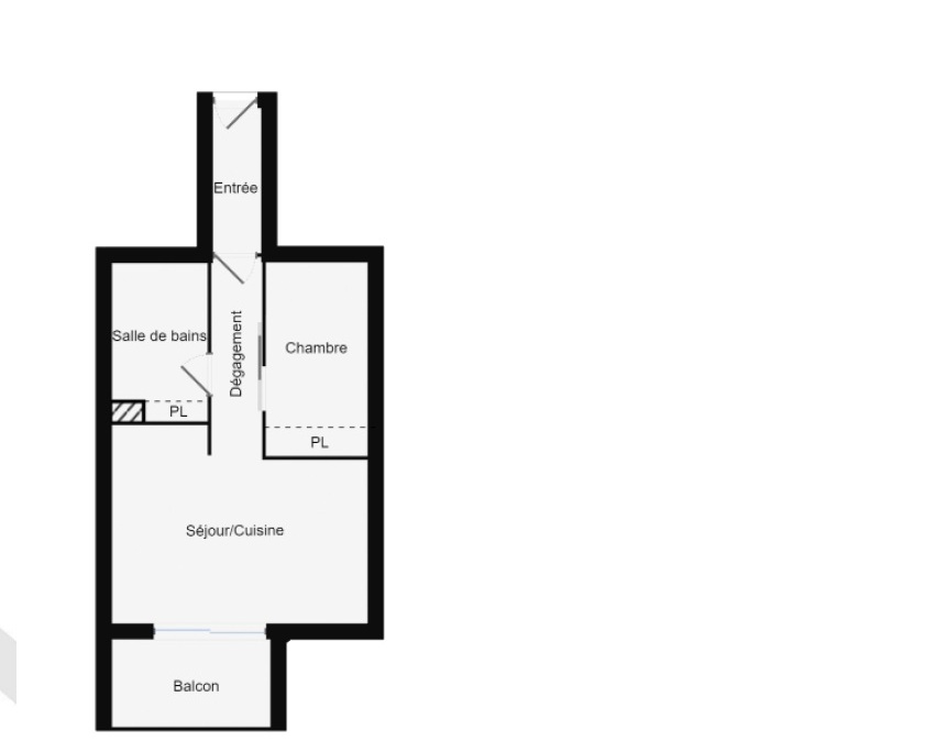 L'appartement se compose d'une pièce de vie agréable avec cuisine , d'un espace nuit distinct (type 1 bis),